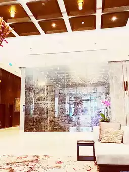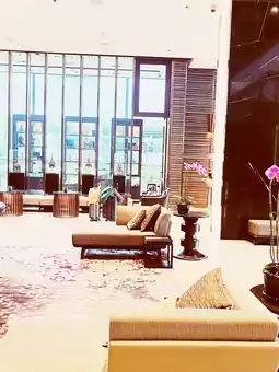 Soaring ceilings, polished marble floors, and stunning floral arrangements create an immediate sense of arrival. Traditional Thai art elements are thoughtfully woven into the modern design—from silk-inspired wall panels to locally crafted sculptures.