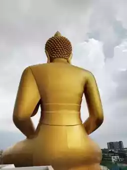 This bronze Buddha image in the meditation posture, with a lotus bud on its top, measures 40 meters across and 69 meters high. It sits alongside the Phra Maha Ratchamongkol Chedi, constructed from pure copper.