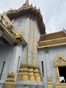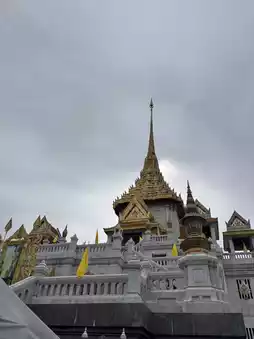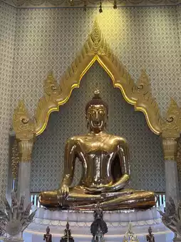 #Get a discount without relying on luck. The big temple is very beautiful. Inside the pavilion is a museum, Yaowarat Museum, that showcases the origins of the Chinese community in Bangkok. It's packed with knowledge. History buffs shouldn't miss it. What impressed me most was the timeline comparing the increasing number of Chinese people during the Qing Dynasty to the collapse of the dynasty and the arrival of the two major parties in China, the Kuomintang and the Communists. There are wax figures illustrating the stories and occupations of Chinese people, including important figures. There are also models of houses and buildings from that era. Thai people can enter for free. The top floor houses a golden Buddha from the Sukhothai period. It's so beautiful it's shocking. It's worthy of reverence and admiration. I was very impressed.