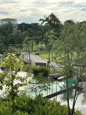 With jogging and cycling paths, a lotus pond, and a wooden bridge for relaxing and enjoying the view, it's perfect for a relaxing day or a morning photo opportunity with beautiful light! ☀️