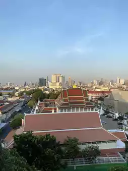 Wat Saket Ratchaworamahawihan, also known as the "Golden Mount Temple," is one of Bangkok's famous temples, renowned for its beauty and charm. Its highlight is the golden mount that stands majestically in the middle of the temple. Visitors can walk up to the top via a spiral staircase of approximately 300 steps. Along the way, you can hear the gentle sound of wind chimes, creating a serene atmosphere. Once you reach the summit, you'll be greeted with a panoramic view of Bangkok, which is especially stunning during the evening or at sunset. Every angle offers a perfect photo opportunity. If you're looking for a peaceful retreat near the city or want to enjoy a classic view of Bangkok, this is the place to visit. You'll leave with both spiritual fulfillment and beautiful photos to cherish.