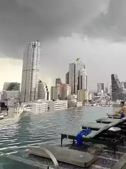 Head up to the stunning infinity pool and soak in panoramic views of Bangkok’s skyline while floating above the city. Whether you swim under the sun or lounge with a mocktail, this is urban relaxation at its finest.