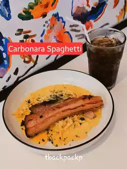 🏡A small, homey shop in Soi Charoen Krung 26. Parking is available for 2-3 cars in the shop area. Make sure to call the restaurant before coming. The atmosphere makes you feel like you're at a cafe in a foreign country. Besides spaghetti, they also serve cakes, coffee, and tea, typical of a chic cafe. Today, we decided to try the "Carbonara Spaghetti." I love the rich, cheesy flavor, served with large pieces of bacon. This dish is a must-try! 🍝