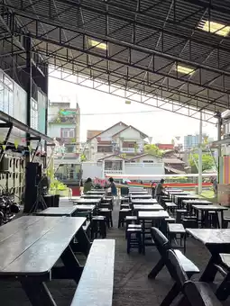 Nestled along the tranquil canal, Uruea Café offers more than just exceptional coffee - it's a front-row seat to Wat Paknam's magnificent golden Buddha. Their signature matcha latte, crafted with premium Japanese ceremonial grade powder, creates the perfect companion as you watch sunlight dance across the temple's serene surface. The café's industrial-chic interior, featuring exposed brick and repurposed wood, tells the story of its shipyard origins while providing a cool escape from Bangkok's heat. Friendly baristas, comfortable seating, and that unforgettable view make this one of the city's most unique coffee experiences that goes far beyond your average caffeine fix.