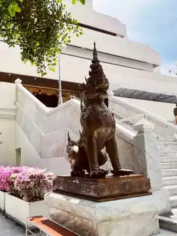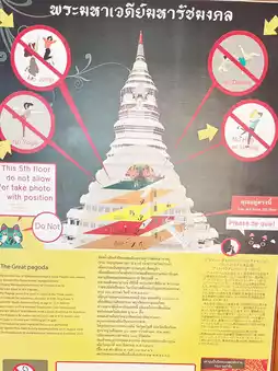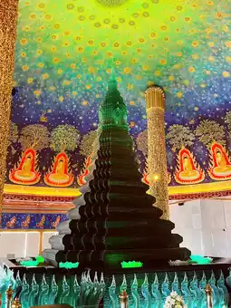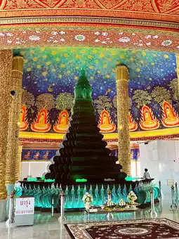Rising gracefully within Wat Paknam's sacred grounds, the gleaming white pagoda stands as a testament to Thai Buddhist architecture at its finest. Each of the five levels represents different aspects of Buddhist teachings, with intricate carvings and symbolic decorations adorning every surface.