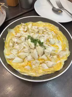 I saw a lot of people queuing up when I went there early. Fortunately, the restaurant turned tables quickly, so the wait wasn't too long. The ingredients are fresh and the taste is invincible. You must add spicy sauce with rice. Sharing seafood rolls, fried rice, and egg rolls is already satisfying!