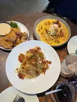 The highlight here is their **homemade fusion-style pasta**, blending Thai and Italian flavors perfectly. Recommended dishes include: