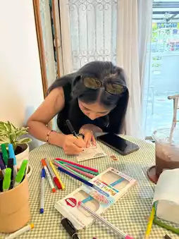 This cute, minimalist-style cafe in the Hua Lamphong area offers a variety of activities to keep you entertained. We painted a cute cake. The staff provided excellent service and were always there to play with us. The shop is located on Maha Phruettharam Road, Maha Phruettharam Subdistrict, Bang Rak District, Bangkok.