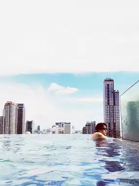 *Visit 4-6PM* when setting sun gilds the skyscrapers in warm tones. Perfect pose: Sit on the pool ledge with legs in water, leaning back slightly to capture both you and the glittering cityscape.