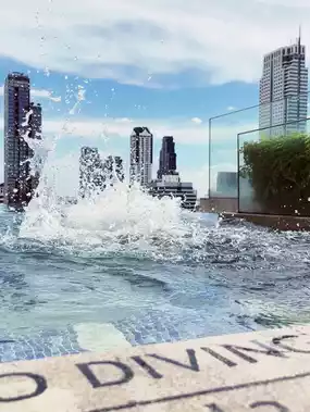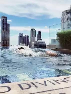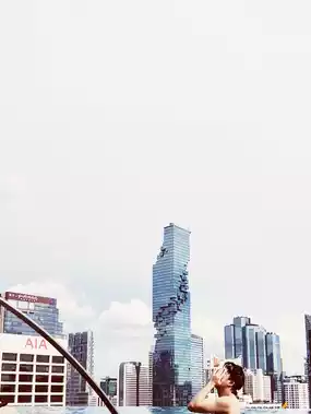 Float on your back with the iconic MahaNakhon and King Power towers rising behind you. Secret: Use a waterproof case and shoot burst mode while gently kicking to create natural water movement.