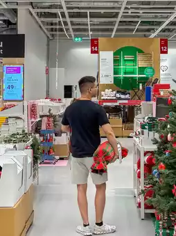 Fir trees, warm lights, and the red and green decorations throughout IKEA's home zones fill the entire space with Christmas spirit, creating a joyful and familiar atmosphere reminiscent of a winter home. 🌿