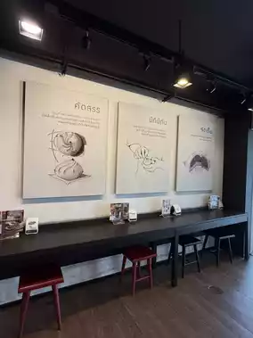 Waraporn Salapao, Prachachuen 35 branch, serves salapao, dim sum, ba chang, and single-dish meals like pork leg rice and roast pork rice. We tried the pork dumplings, minced pork buns, cream-filled ba buns, har gow, and ba chang. They were all delicious! The restaurant has a great atmosphere and dine-in seating, giving it a retro Chinese feel.