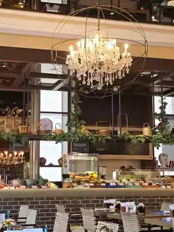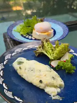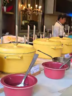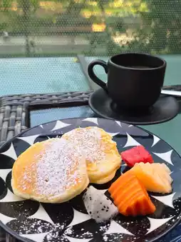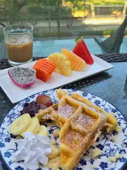 The breakfast area isn't very large, but there are plenty of food options, and there's also an outdoor seating area to choose from.