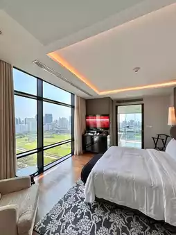 The Guest Room Corner is the entry-level room type, but its unique feature is its corner location, offering breathtaking views of both the Golf Course (RBSC) and the city. The sunset views are particularly stunning.