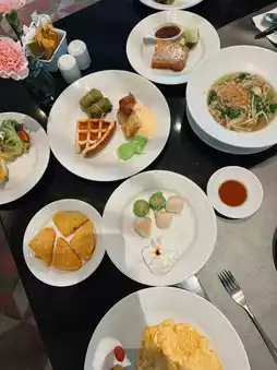 ✨ The selection includes both Thai and international favorites — from fresh pastries and tropical fruits to made-to-order eggs and aromatic coffee.