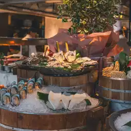 They're showcasing a premium menu featuring fresh ingredients, Chinese, Thai, international, and seafood dishes.