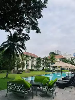 ✨ The swimming pool area is calm and inviting, surrounded by tropical gardens, making it a perfect spot to chill with a book or enjoy a quiet afternoon.