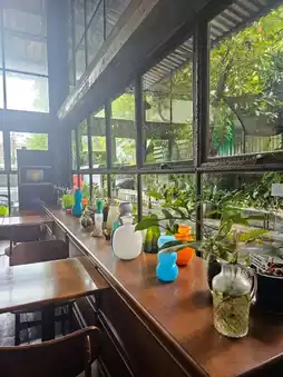 Eastern Glass Cafe ☕ is a unique and incredibly cool cafe in the Bang Khae area. Located within the grounds of the Burapha Glass Factory, a long-established handmade glass factory that's been in business for over 60 years! 🏭 The cafe's atmosphere is a cool industrial loft, with glass production equipment and tools incorporated into the decor, creating a classic yet artistic old factory feel. 🖼️