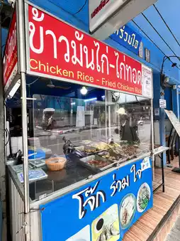 Near Asok Station, at the end of an alley bustling with locals on their way to work, stands Jok Ruam Jai, a striking blue shop.