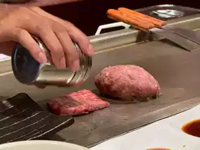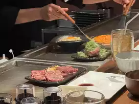 🍚This restaurant's highlight is its premium Wagyu beef hamburgers and steaks, where customers can participate in the grilling process on a teppan grill. The chef will shape the meat fresh in front of you and grill it to a rare finish. Customers then grill the meat on the grill to their desired doneness. Enjoy it with a variety of sauces, adding a rich and flavorful touch to the meal. Enjoy the soft, fragrant Japanese rice from Tohoku. If you order a set, you'll also get salad, soup, and soft serve.