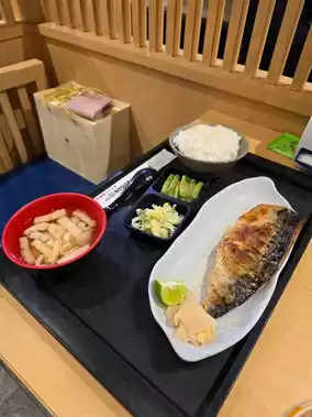 My favorite set is the grilled saba with salt. The set comes with rice, side dishes, and hot green tea. This meal was filling and delicious.