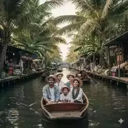 🦐 Khlong Lat Mayom Floating Market | Check in at the market sign, eat grilled shrimp, and enjoy a boat ride.