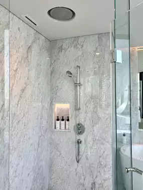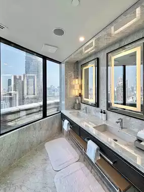 The best views in this suite are from the living room and the main bathroom, as they are situated at the corners of the building on each side. The bedroom, located in the middle, doesn't offer as spectacular a view as the other two zones.