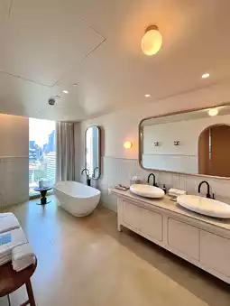 The bathroom is divided into two rooms, but one minor complaint is that the bathtub in this room is quite small and doesn't have a jacuzzi like the standard suite I previously stayed in.