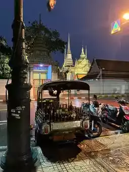 🍷 Next to that alley, opposite Wat Pho, is "Medium Rare Tha Tien Tuk Tuk." In front of the alley, opposite Wat Pho, is "Medium Rare Tha Tien Tuk Tuk." A tuk tuk with a large number of wine bottles is a check-in point. The food here is reasonably priced, offering a variety of dishes like som tam (papaya salad) and seafood (though the flavors may not be as spicy as they're intended for tourists). The highlight of the restaurant is the beef steak. It's incredibly affordable, tender, and easy to eat, and incredibly delicious. And, most importantly, the wine here is reasonably priced compared to other restaurants in the area.