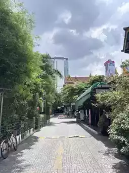 The temple's shady atmosphere, adorned with large trees and beautiful Thai architecture, is perfect for a relaxing stroll.