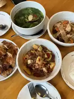 Auntie Kaew's crispy chicken is so delicious! The chicken is marinated in a rich, deep-fried batter, crispy on the outside, tender on the inside, and not greasy at all. It goes perfectly with hot steamed rice or sticky rice. The sauce is delicious, with a perfect balance of sweet, sour, salty, and spicy. Auntie Kaew is friendly, provides fast service, and is reasonably priced. If you're in the area, give it a try. You'll definitely be hooked!