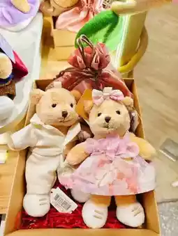 At the entrance, a large, adorable teddy bear dressed in Thai attire greets you. All of the teddy bears here are customizable and handmade. You can choose your favorite outfit and dress up the bear. There are so many outfits for the bears, including overalls, ties, casual wear, hoodies, nurse outfits, and even bride and groom teddy bears. The store also sells a variety of adorable bags, including ones with gradient colors and soft materials. I saw many young women happily choosing their favorite teddy bears. In the end, I chose to take Snow White home ☺️😜🎉🎉🎉