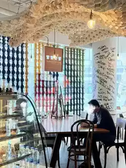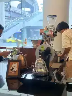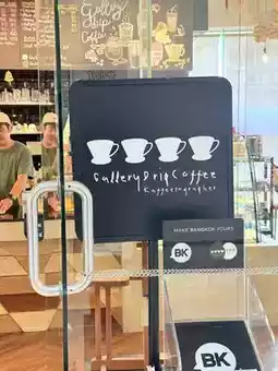 A small cafe in the first floor of the art gallery. Someone I know told me that this cafe has been open for a very long time. They have a wide selection of coffee beans. The coffee is a bit sour. You can sit and enjoy a fragrant drip coffee before going up to admire the art. You can sit and relax all day. The shop is decorated very chicly. I like how they use paper cups to decorate the top. It's very pretty. It's fun to sit and look. The shop also sells handmade items like shirts and bags. Go check it out. #GetDiscountsNotRelyingOnLuck #Bangkok