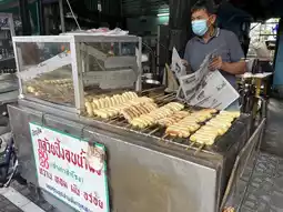 One day trip from Bangkok to Maha Sarakham by train, here it is... Get off at Wongwian Yai MRT and transfer to the train at this station. Wait for the train by trying grilled bananas from Uncle for only 20฿ (try food everywhere I go 🤪🤣) Delicious as usual (everything I eat is delicious 🤣🤪😝🤣) Don't forget to support them.... Eating grilled bananas, not monkeys can eat them 🤣 >>> Get ready to go to the next station 🚉 Mahachai.