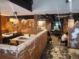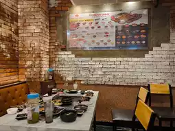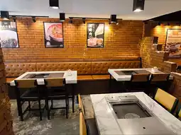 The interior is beautifully decorated with bright orange bricks, creating a comfortable atmosphere. The air conditioning is cool and comfortable.