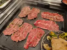 Atmosphere/Location - SHELL WE MEAT KOREA SEAFOOD is a Korean BBQ buffet restaurant that also offers seafood. Located in Ratchadaphisek Soi 3, walk down the alley for about 50 meters, turn left at the first intersection, and walk another 10 meters. The restaurant will be on your right. It's a small restaurant in a soi with no parking. You may have to park at Fortune Town and walk there. There are about 9-10 tables inside. The restaurant offers three buffet prices. I chose the most expensive option. The food is grilled on a flat griddle. Various types of meat are available, such as blade steak, ribeye steak, steak, and beef intestines.