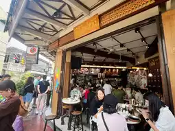 🪑 The cafe's contemporary Chinese décor, wooden tables and metal chairs, exude a distinct "Hokkien Kopi" vibe. It's also located near the Giant Swing, perfect for a stroll to Wat Suthat.
