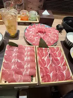 Let's go get something delicious! This restaurant is called Hitori Shabu, and it's a single-pot shabu-shabu restaurant. You won't have to worry about sharing shabu or sukiyaki with others because you can choose what you add to your pot first or last. The set menu is a great value. It includes vegetables, meat, and, most importantly, high-quality meat at a reasonable price. We tried the sukiyaki and shabu-shabu buckets, and both were delicious.