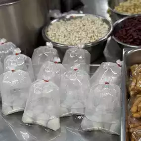Auntie Wan's shop is located on Banthat Thong Road. Across from Chulalongkorn University's Centennial Park, this long-established dessert shop offers a wide selection of hot and cold soy milk, fresh milk tofu pudding, fresh milk grass jelly, bua loy dumplings, and longan tao tung. 😋