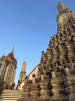 When visiting Bangkok, you must not miss the magnificent Grand Palace and Wat Arun across the river. In the afternoon, I took a boat ride on the Chao Phraya River, with a breeze carrying the scent of the water, and the temples and golden rooftops along the shore sparkling under the sunlight. Upon arriving at the Grand Palace, the golden and splendid roofs appeared even more solemn under the sunset, and the intricate carvings and statues were breathtaking.
