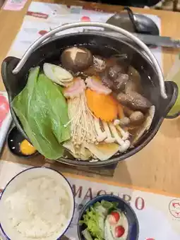 💚😋 We ordered the pork shabu set. The soup was incredibly flavorful and delicious. The pork was sliced perfectly. It also came with rice. Their ingredients are top-quality. And we finished it off with a rich matcha ice cream. It's a great value! 🍦🍨