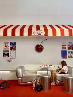 Don't miss this Korean cafe photography lover! Cham.thing is truly a cherry-themed world, with every corner, from the storefront to the interior, adorned with sweet reds and pinks and a touch of vintage flair, reminiscent of a '90s European bakery.
