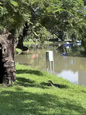 They might seem startling at first, but they're actually quite docile and avoid people. If you stroll around the lake, you'll often spot lizards leisurely strolling—a unique sight unique to Lumphini Park!