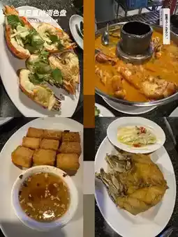 After visiting the aquarium, there's a comprehensive food court upstairs at Siam Paragon, or you can check out the restaurants in the lobby nearby. This time, I chose four dishes: spicy shrimp, deep-fried spring rolls, Thai-style spicy and sour fish, and a Tom Yum Goong hot pot. The authentic Thai cuisine lived up to its reputation: the shrimp were generously sized, the spring rolls were crispy on the outside and tender on the inside, and the hot pot was both sour and spicy. After every bite, I was completely blown away! For a quick lunch, head to Siam Paragon Food Court. For a more atmospheric dinner, find nearby neighborhood restaurants specializing in home-style Thai cuisine, which are both delicious and affordable.