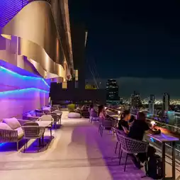 🍹✨End the day with a sunset view at The Roof @38th Bar, the hotel's romantic rooftop bar. The sunset is so romantic, you can enjoy a meal and a drink. Enjoying the Bangkok night view is the perfect time of day.