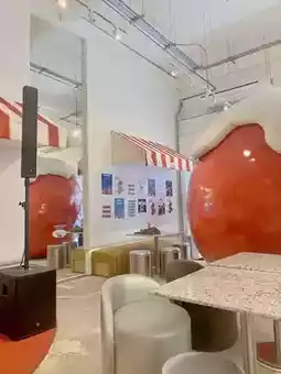 • มุมถ่ายรูปเยอะมากกก! ตั้งแต่ลายเชอร์รี่บนผนัง ไปจนถึงบรรยากาศคุมโทนสีขาว-แดง-เงิน รับรองว่าได้รูปกลับไปอัพลงโซเชียลแบบจุกๆ แน่นอน!