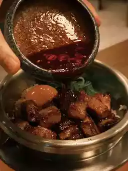 • 🍳 To enjoy, mix the sauce and raw egg yolk into the hot rice in the pot, then scoop and savor the rich, aromatic flavors of the hot pot.