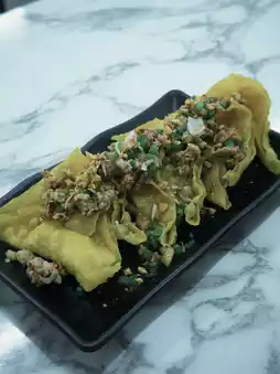 • 🍤 Another must-try is the "Crispy Shrimp Wonton Salad," featuring crispy-on-the-outside, soft-on-the-inside wontons stuffed with shrimp, topped with a spicy minced pork tom yum sauce that will wake up your taste buds.