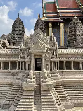 • 💚 The highlight of the temple is the "Emerald Buddha," a sacred Buddha statue carved entirely from jade. It is enshrined in the main ordination hall, and the King himself changes its seasonal attire in a beautiful and spiritually significant ceremony.