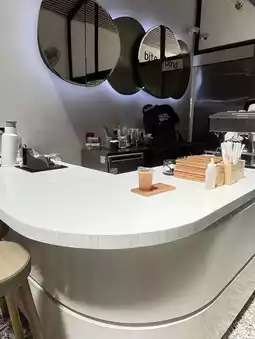 The wooden tables, glass corners, clean white walls, and countertops are the signature of this cafe. It's like being transported to a Seoul cafe without having to fly to Korea! 🇰🇷